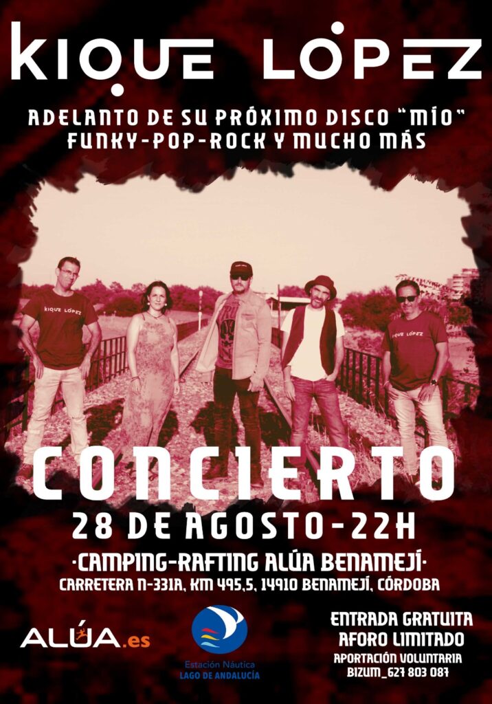 El mismo día ya por la noche, a las 22h en el camping de Benamejí, Kike López nos presentará un adelanto de lo que será su próximo disco “Mio”, una fusión de funky, pop, rock que no dejará indiferente a su público. La entrada es gratuita con aforo limitado por orden de llegada.